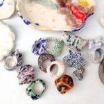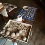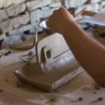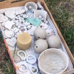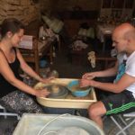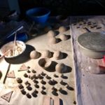 ez már a tábor második napja, az itt levők már berendezkedtek. kezdetnek agyagozás, formák, nedves agyag, tapicskolás. korongozás, koncentrálás. kis tálkák, golyók, hasáb, előregyártott sablon alapján fűszertartó. csak meg ne repedjen. mert levegős.