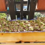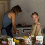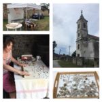 jönnek-mennek a népek. hegedűs, gitáros. minestrone leves, gombás risottó, gulyásleves, sült csirkecomb, rántott tál, kovászos uborka, pizza, barack, dinnye, szilva, és persze reggelire az elmaradhatatlan kolbász, helyi tojás (elfogyott végül mind a nyolcvan?), kecskesajt.
